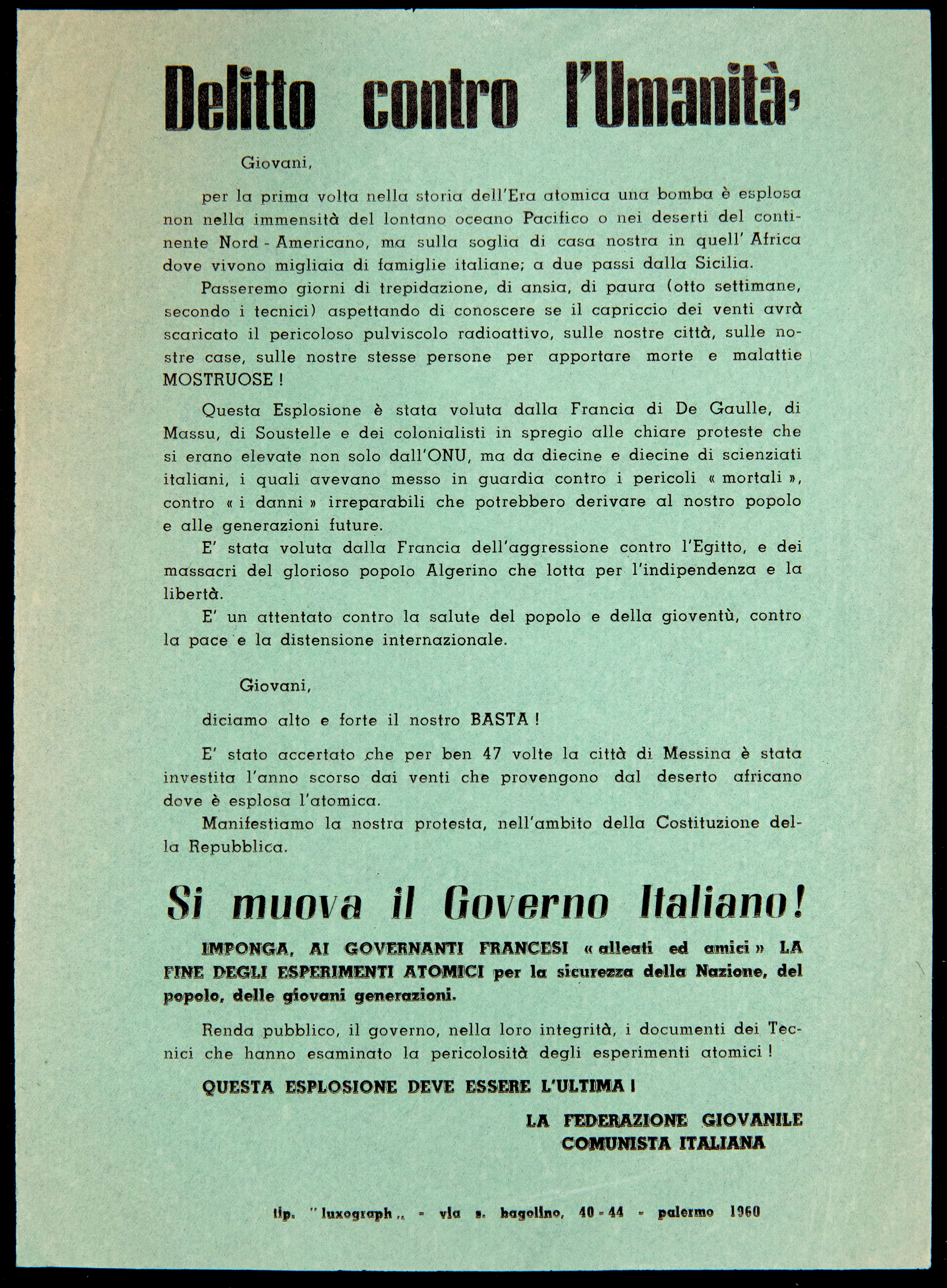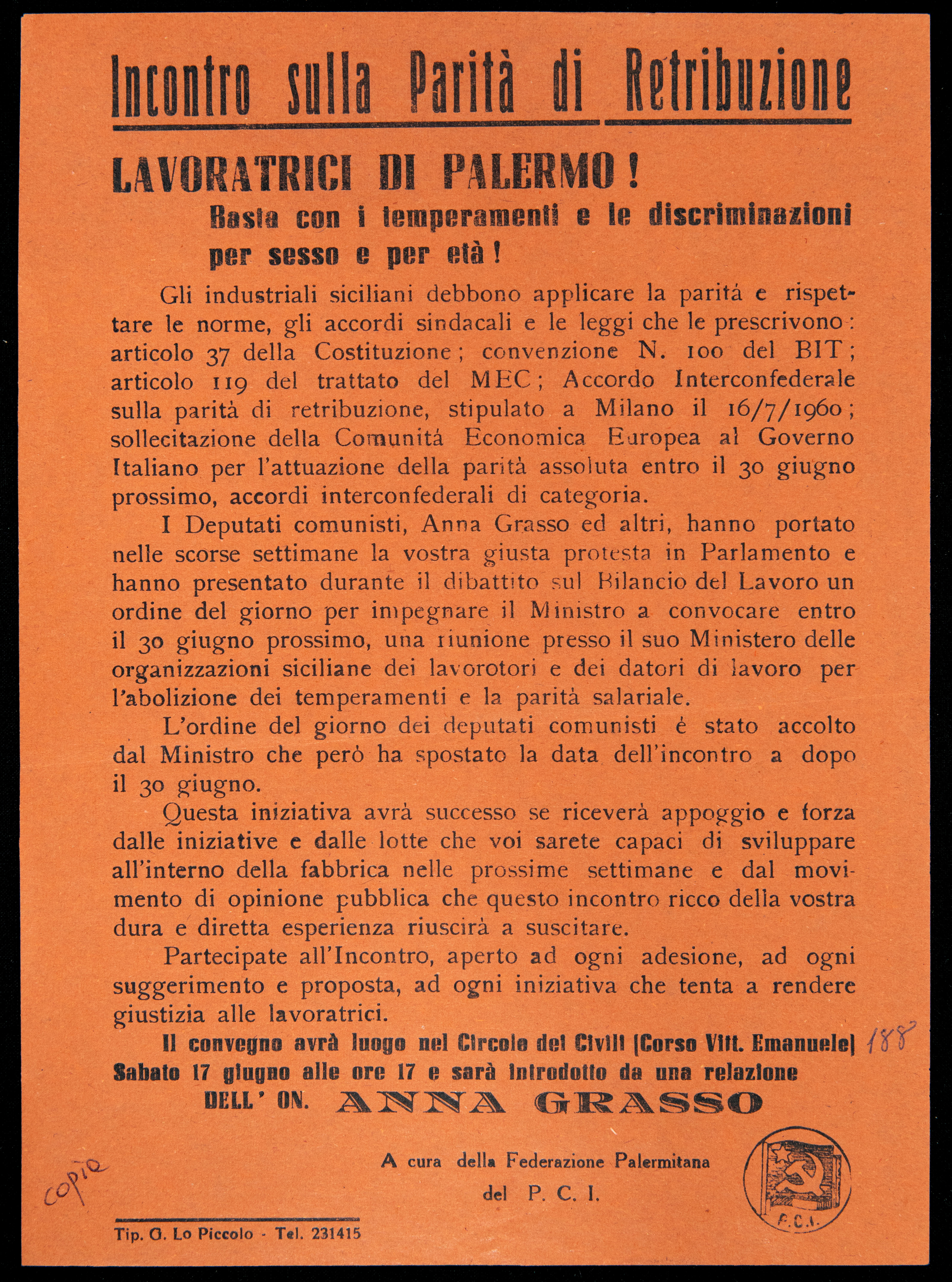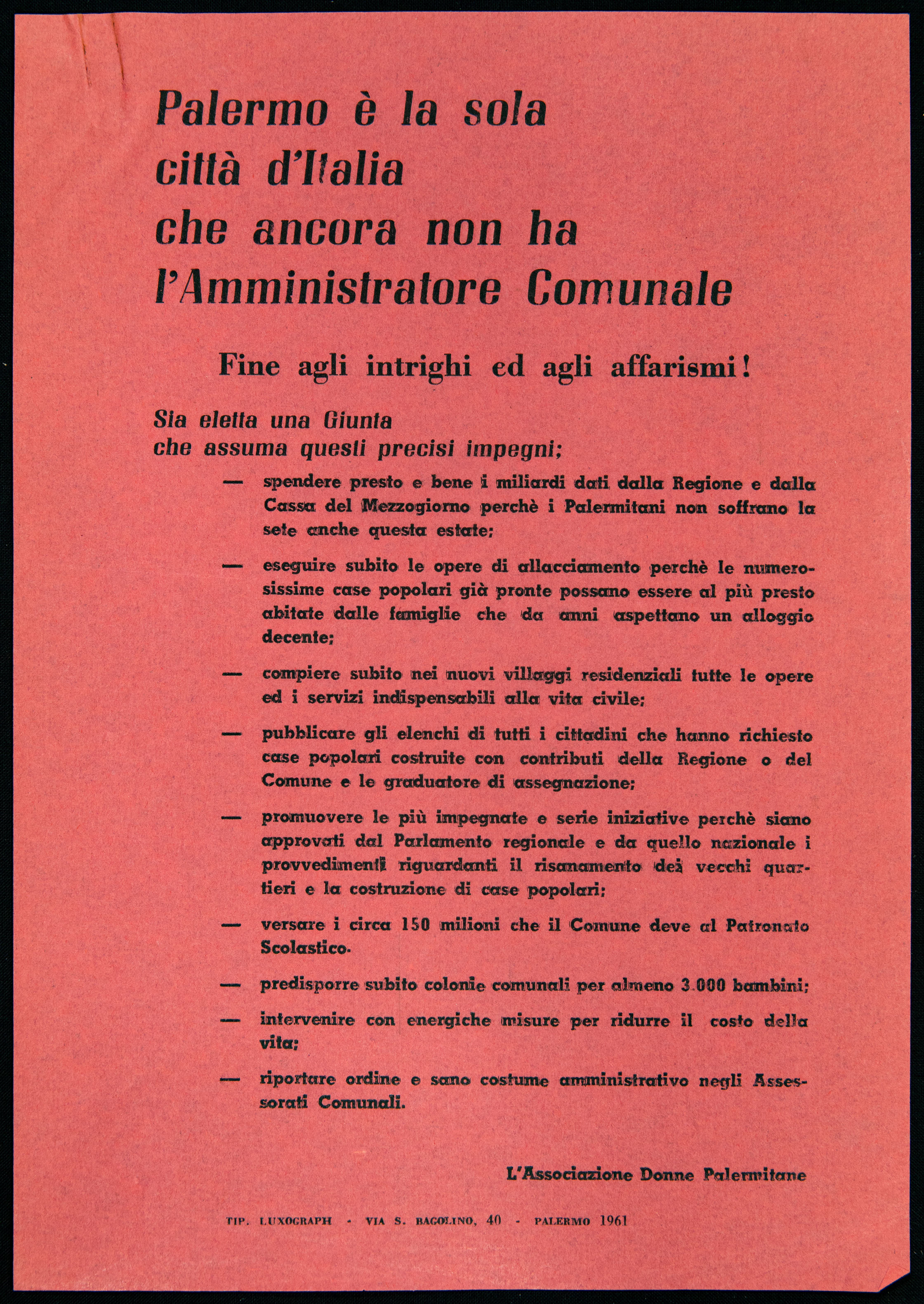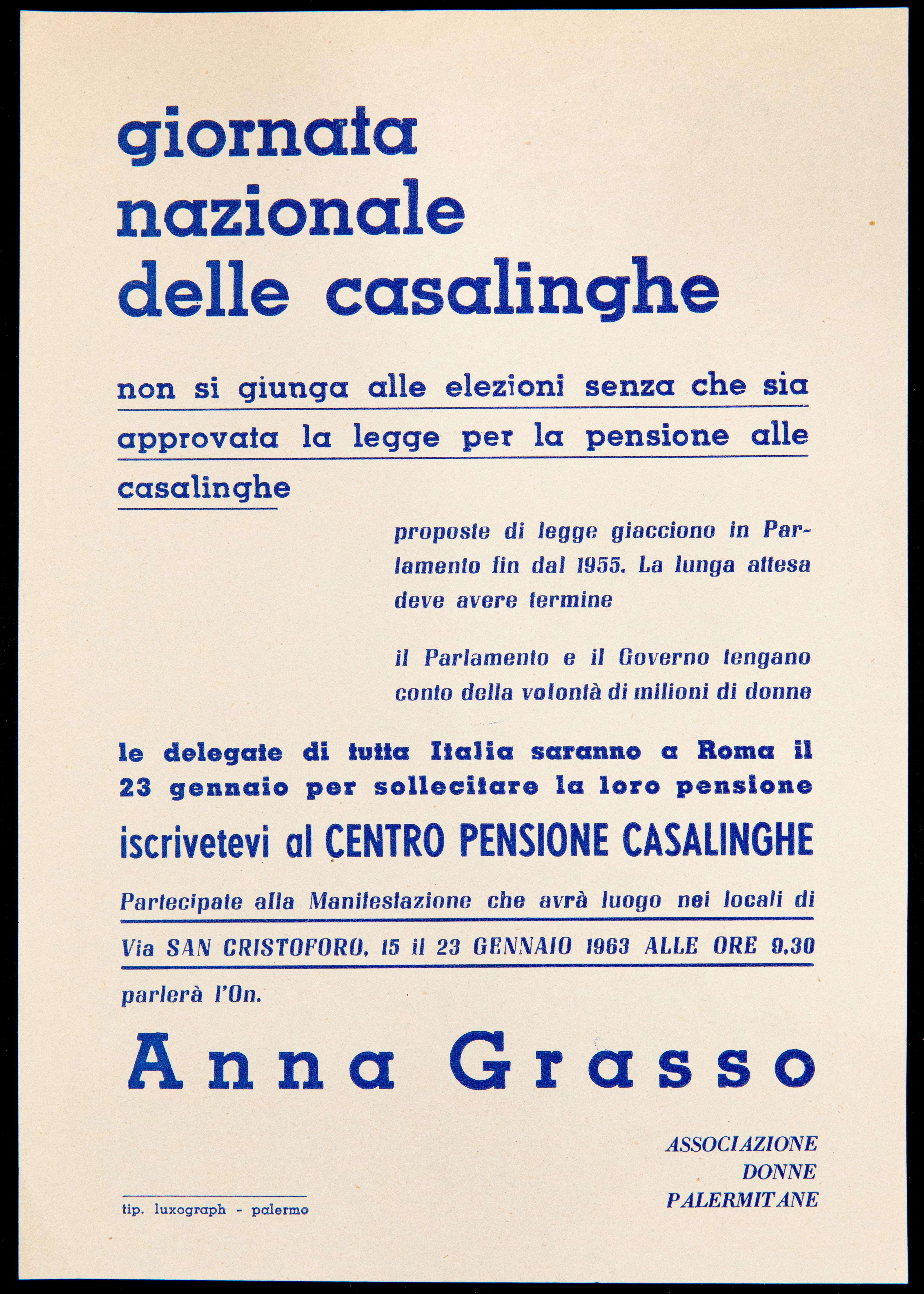 Archivio iconografico Delitto contro l'umanità 1960 Operai del Cantiere Navale s.d. [1961] Donne di Caltanissetta 1961 Casalinghe s.d. [1961] Palermo è la sola città d'Italia che ancora non ha l'amministratore comunale 1961 Donne di Palermo 1961 Sciopero nazionale dei braccianti e compartecipanti analisi storica analisi tecnico-formale s.d. [1961] Dibattito sul disarmo s.d. [1961] Incontro sulla parità di retribuzione analisi storica 1961 Giornata nazionale delle casalinghe 1963 prima pagina 2 3 ultima pagina