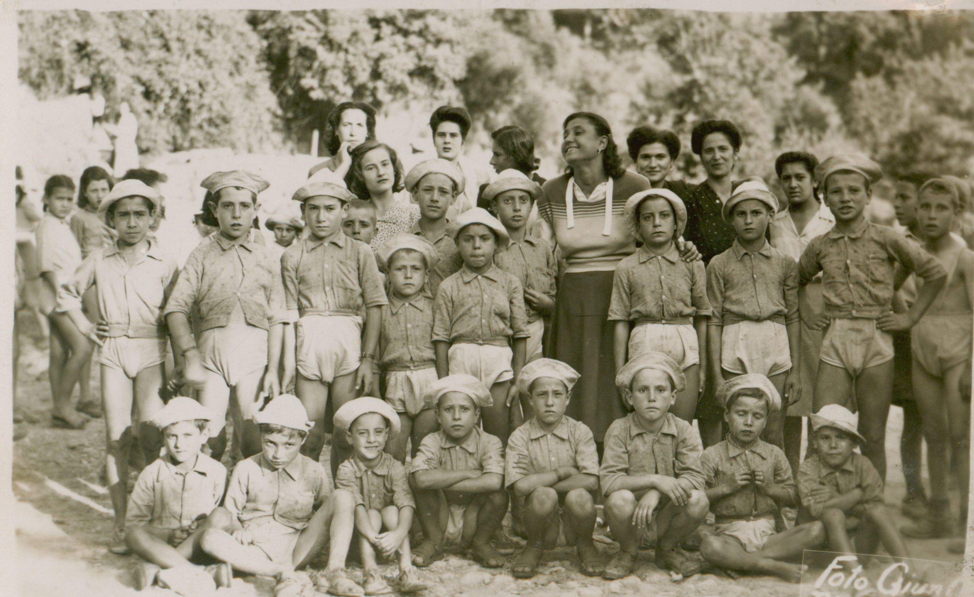 Gruppo di bambini e insegnanti della colonia di Petralia Sottana.