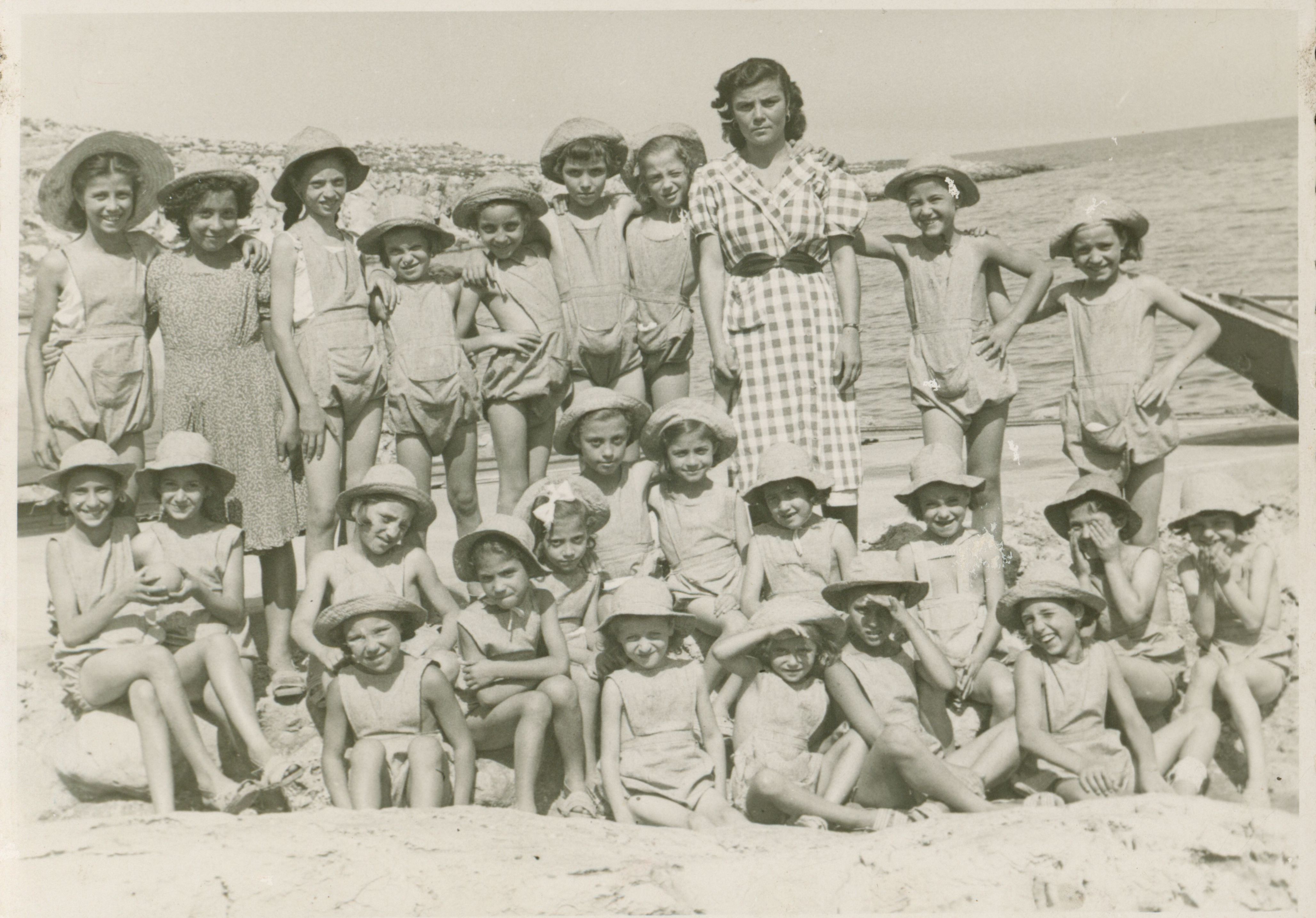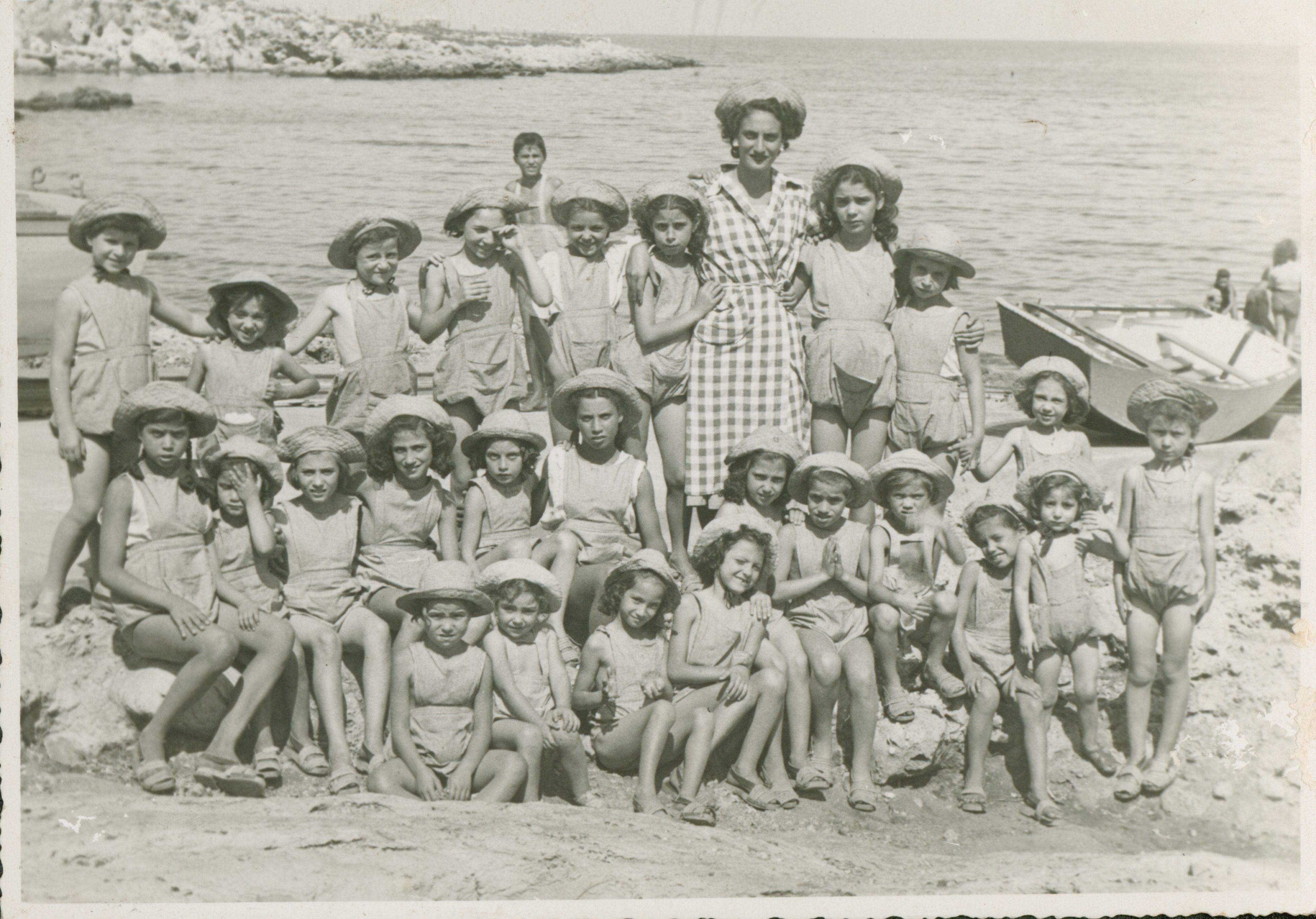 Gruppo di bambini e insegnante al mare (Sferracavallo).